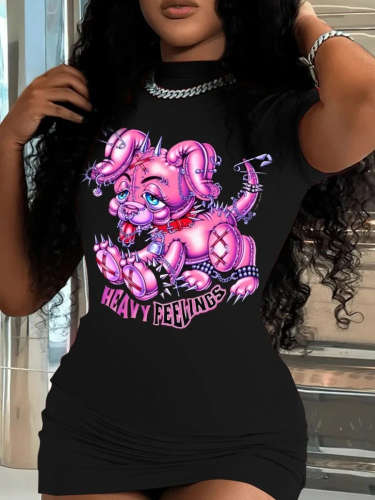 Cartoon Pattern,Letter,Printed,Cartoon,Pullover,Print,Letter Pattern