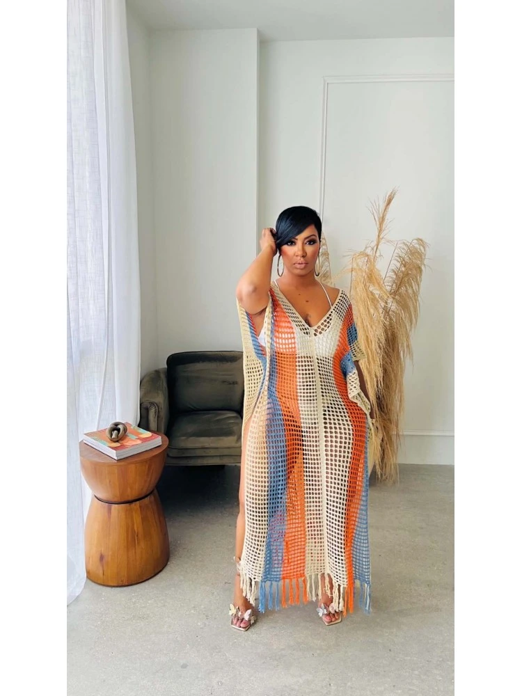 Colorblock,Striped,Fringe,Tassel,Pullover