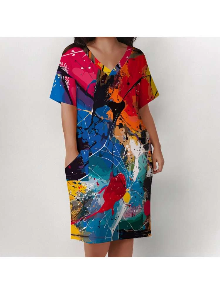 Colorblock,Contrast Color,Graffiti,Printed,Color Matching,Pullover,Print