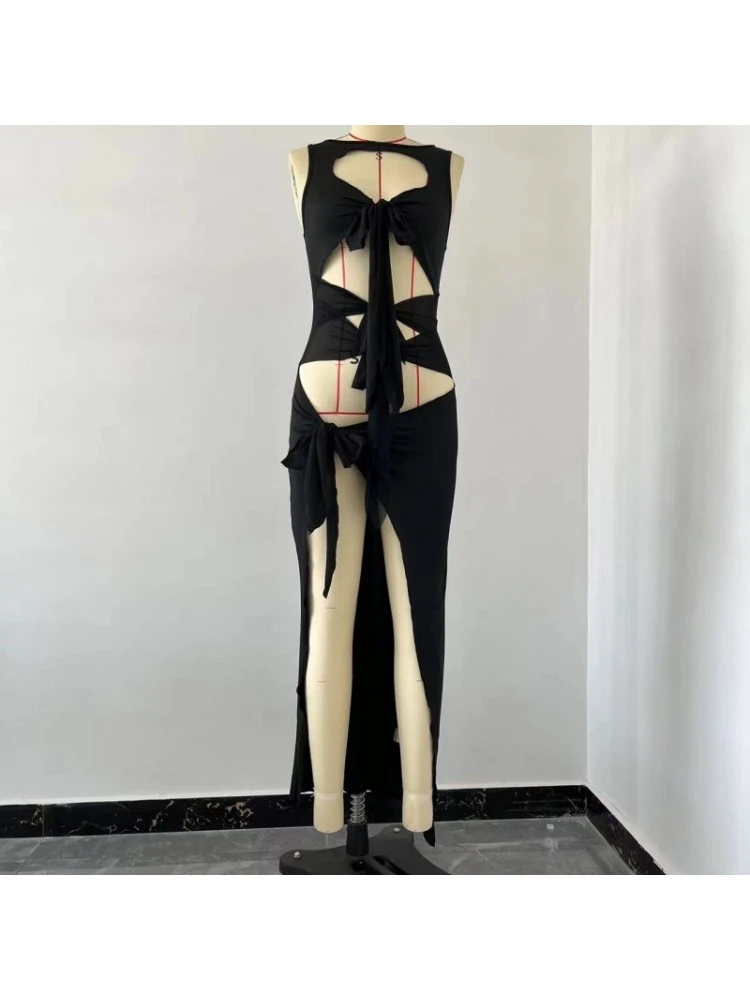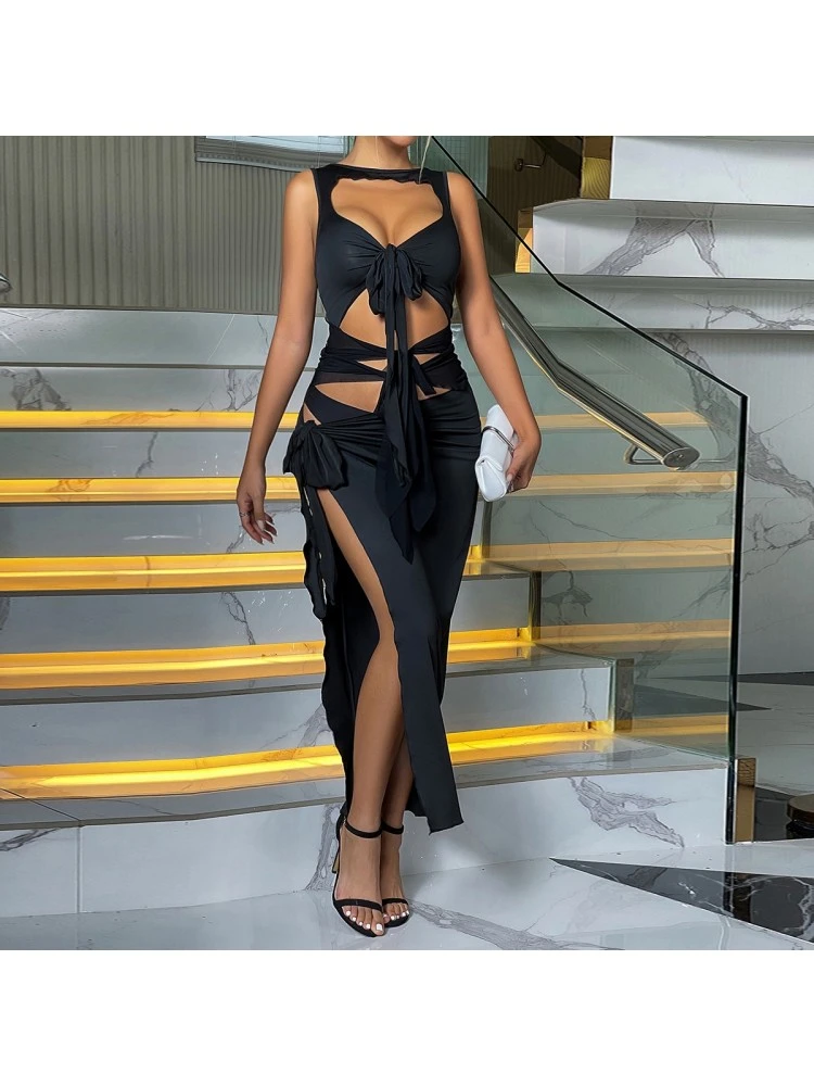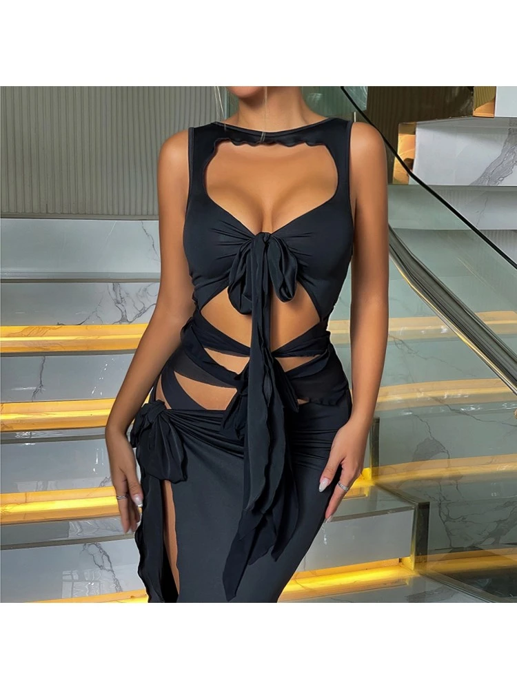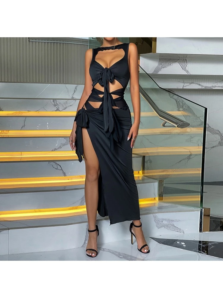 Bandage,Patchwork,Pure Color,Irregular,Split Hem