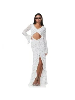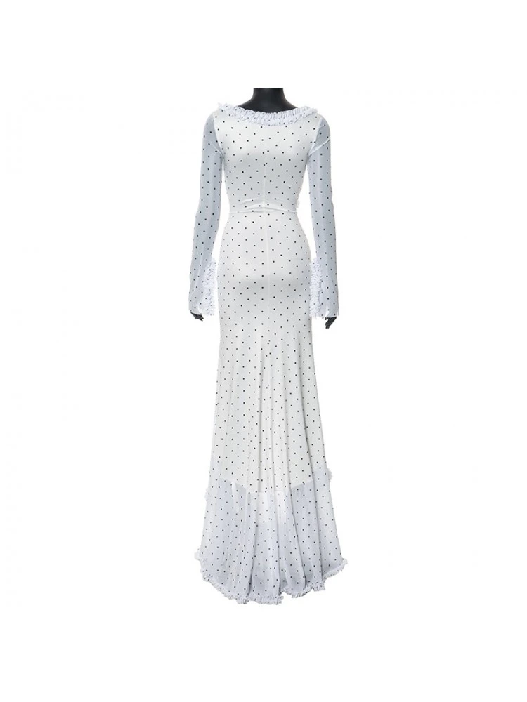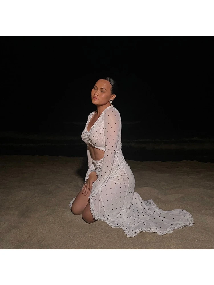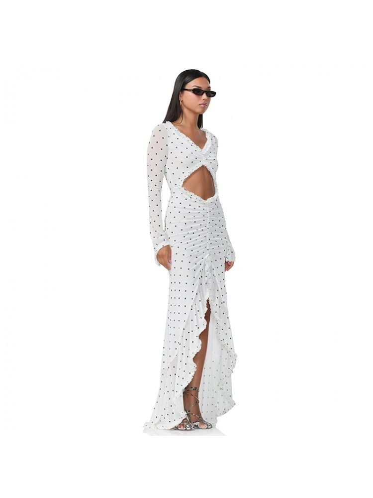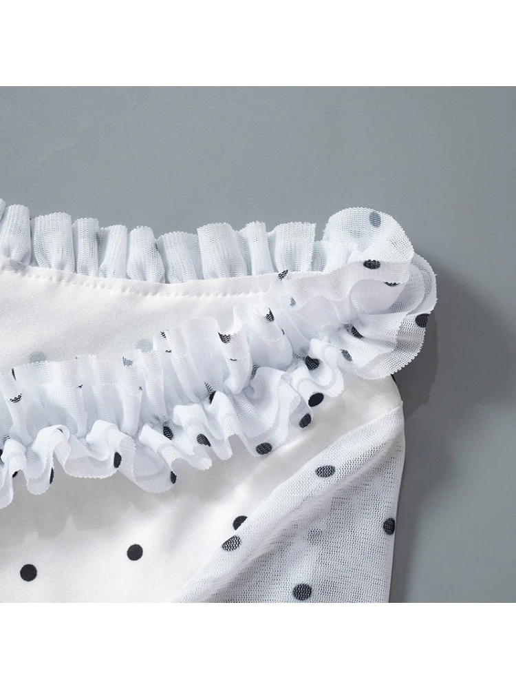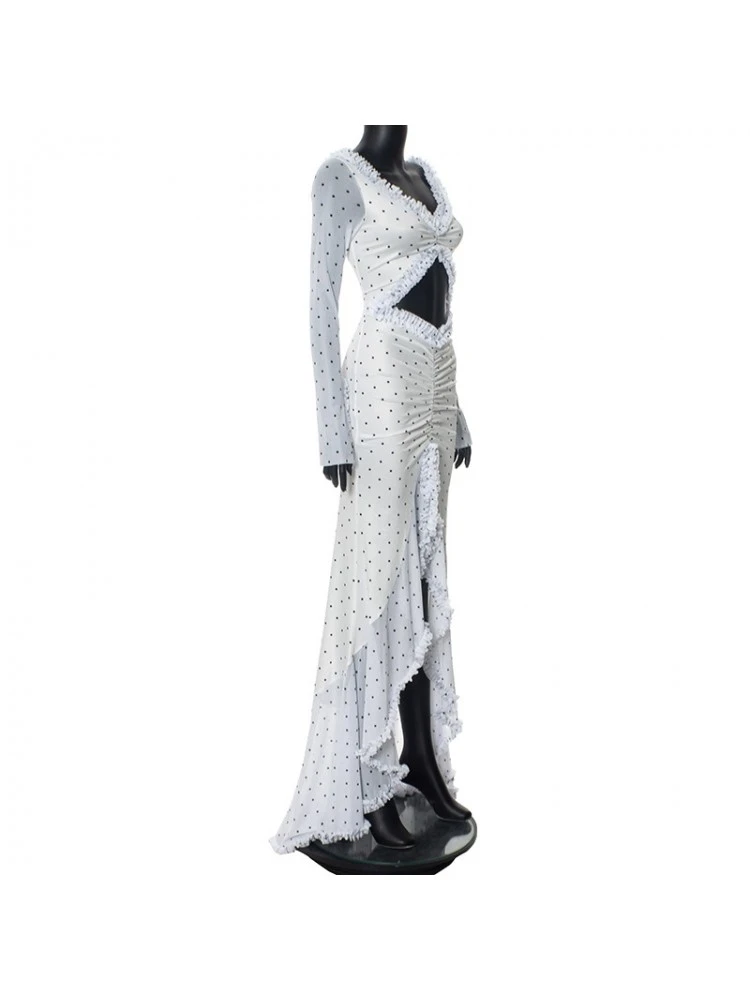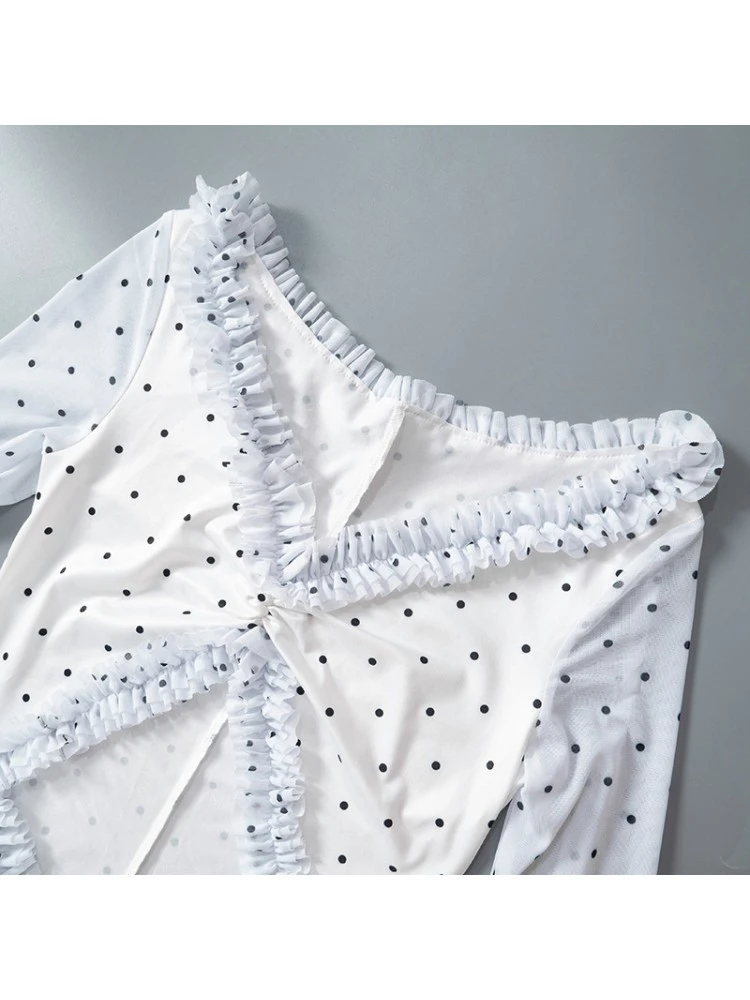 Dots,Irregular,Lacework,Patchwork,Polka Dots,Printed,Ruched,Split Hem,Ruffle,Pullover,Hollow-out