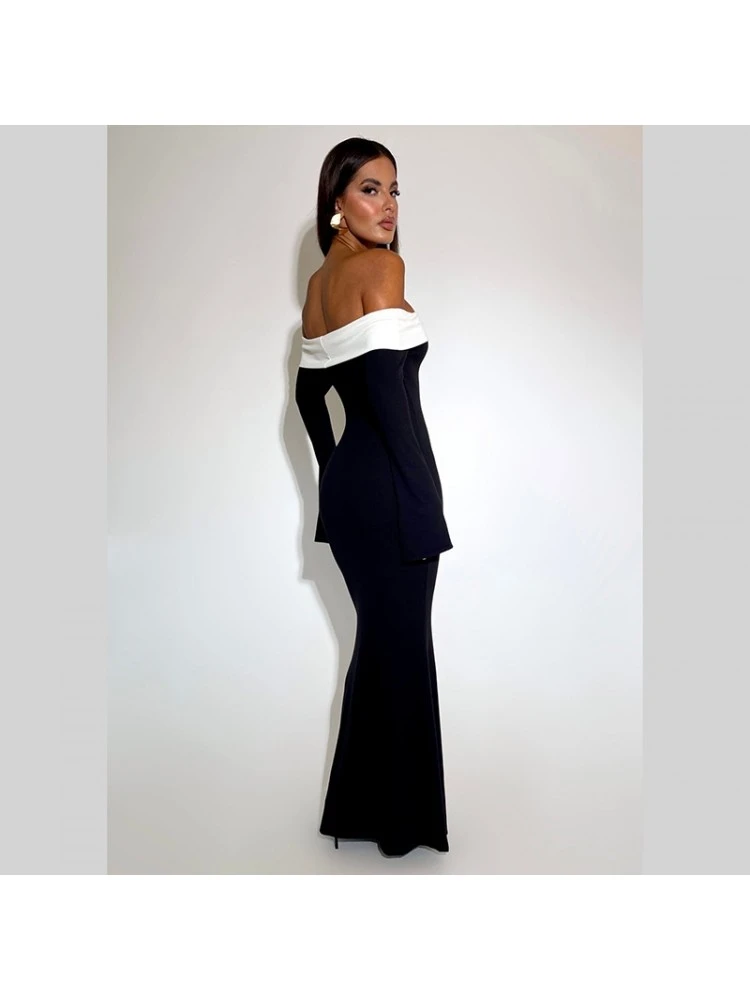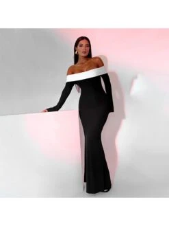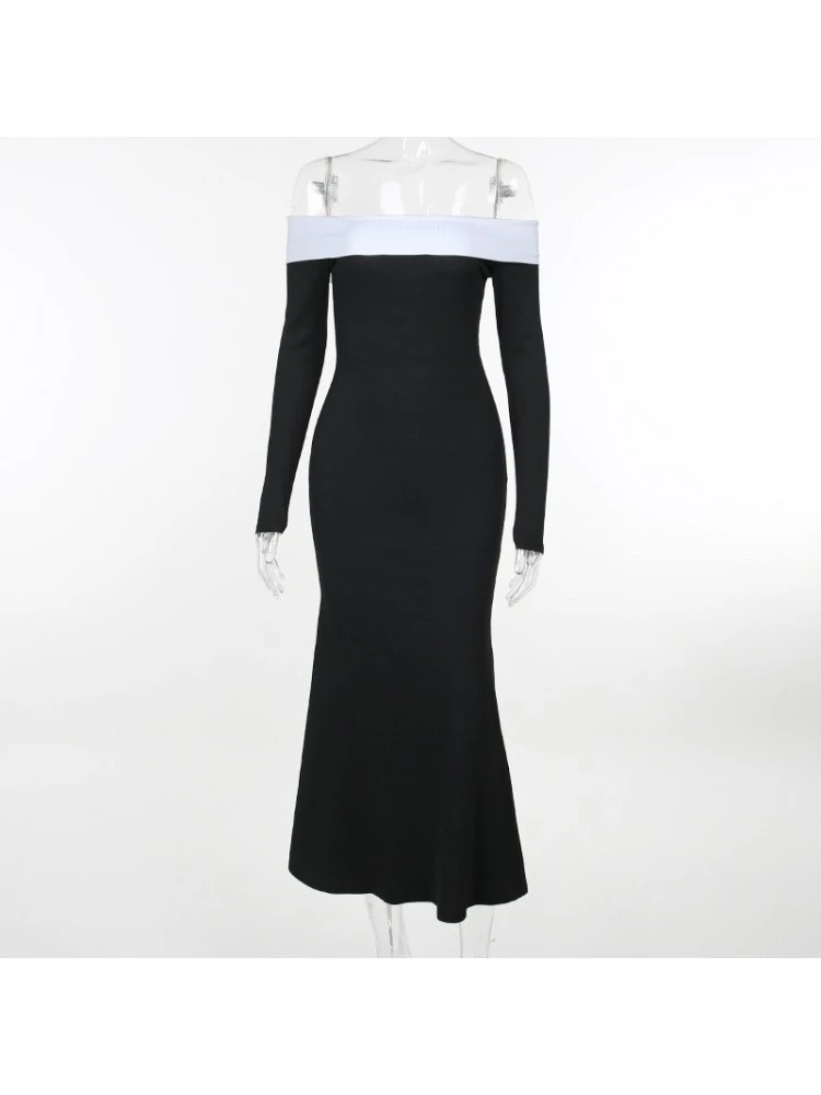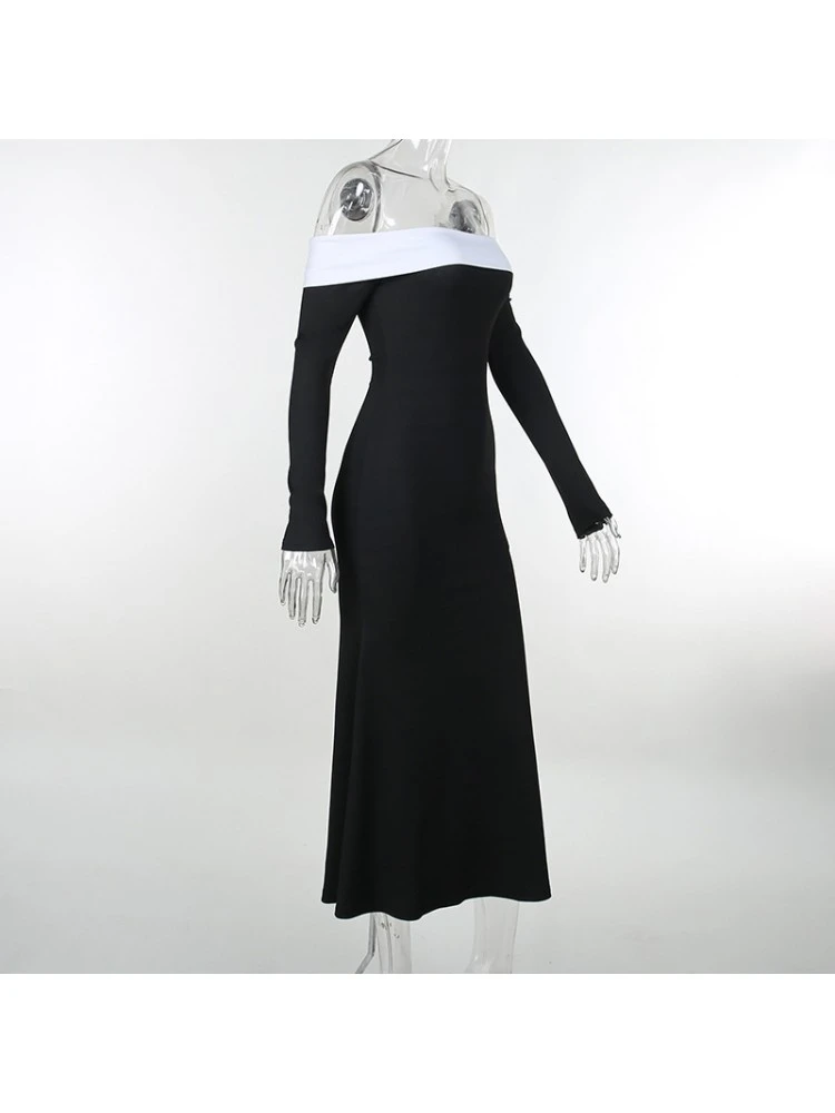 Colorblock,Patchwork,Pullover,Terylene,Long sleeve,Off Shoulder,Empire Waist,Hip Hop