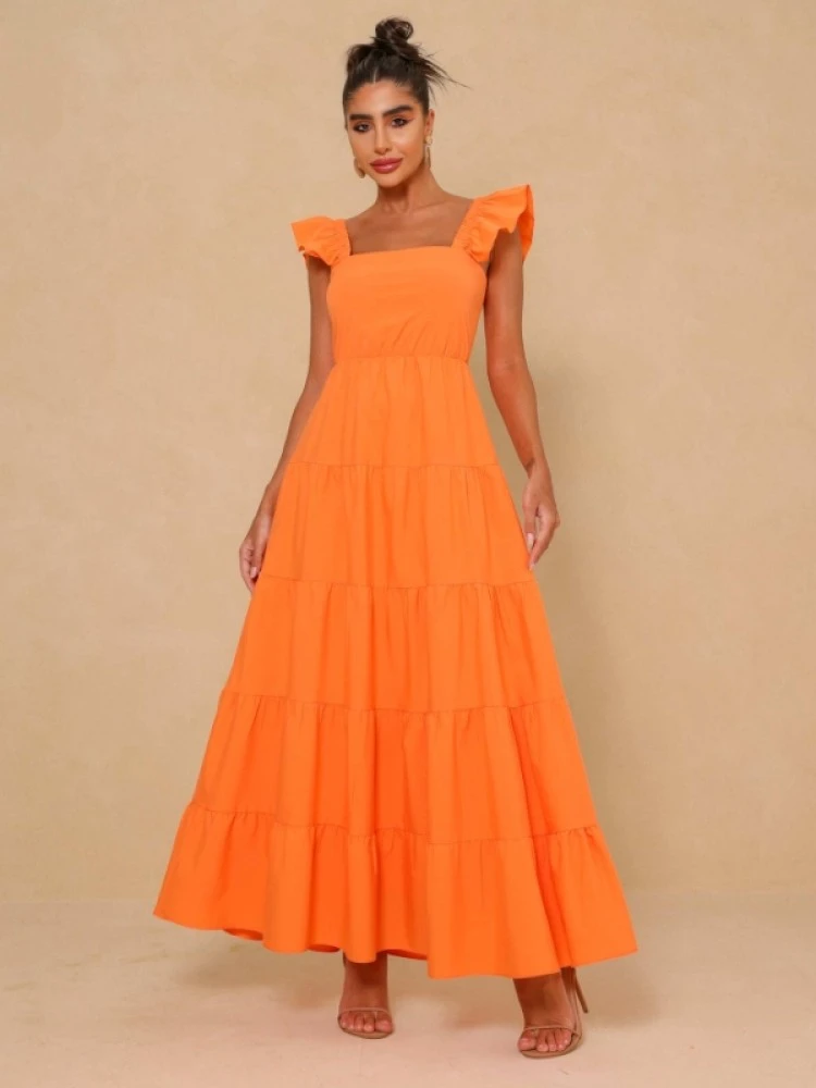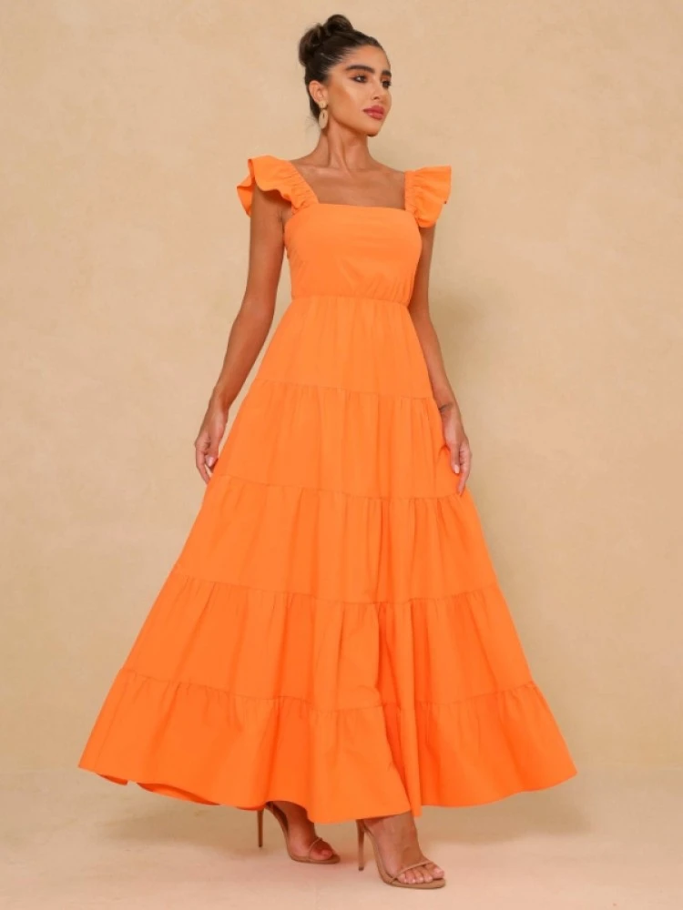 Backless,Ruffled Sleeve