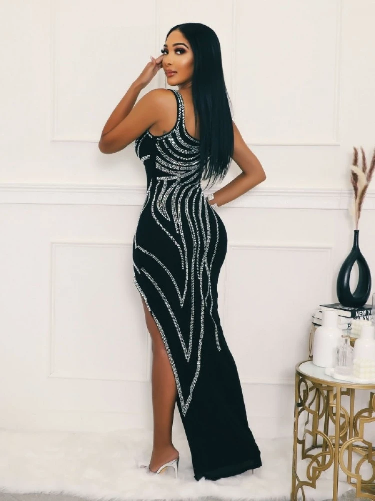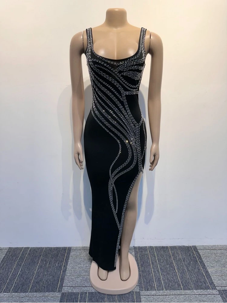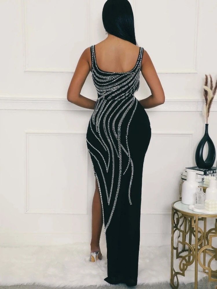 Hotfix Rhinestones,Patchwork,Split Hem,Embellished