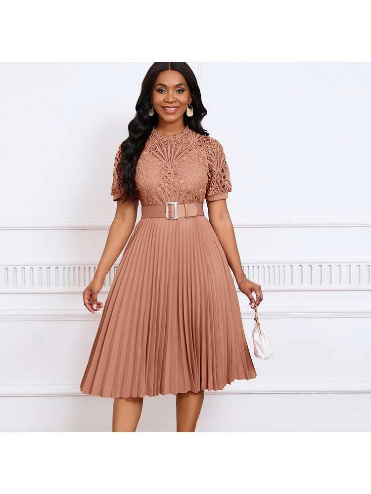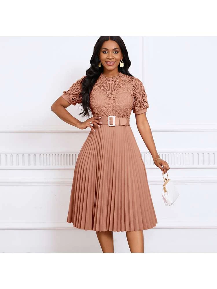 Patchwork,Pleated,Lace Detail,Pullover