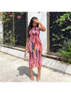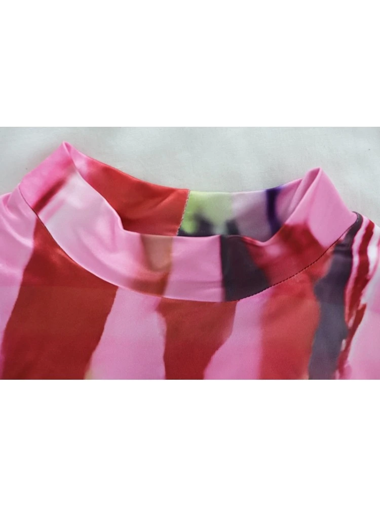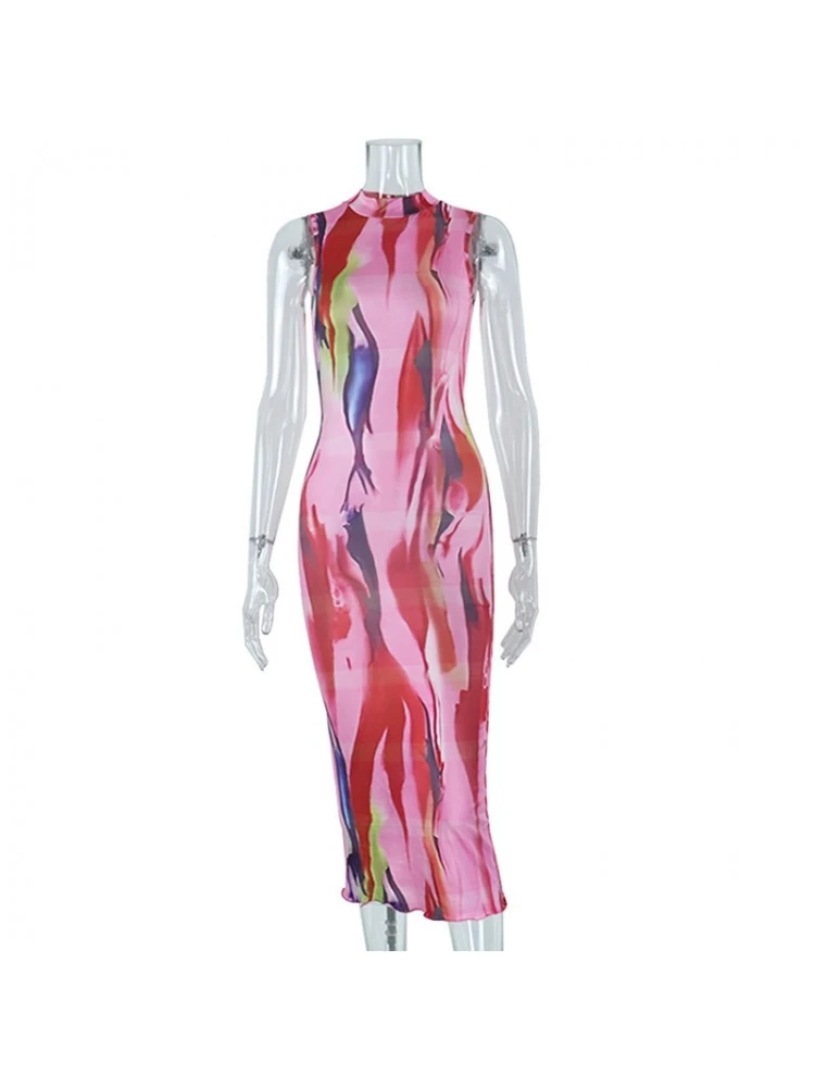 Color Matching,Print,Bodycon,Terylene,Stand Collar,Sleeveless,Mid-rise,Hip Hop