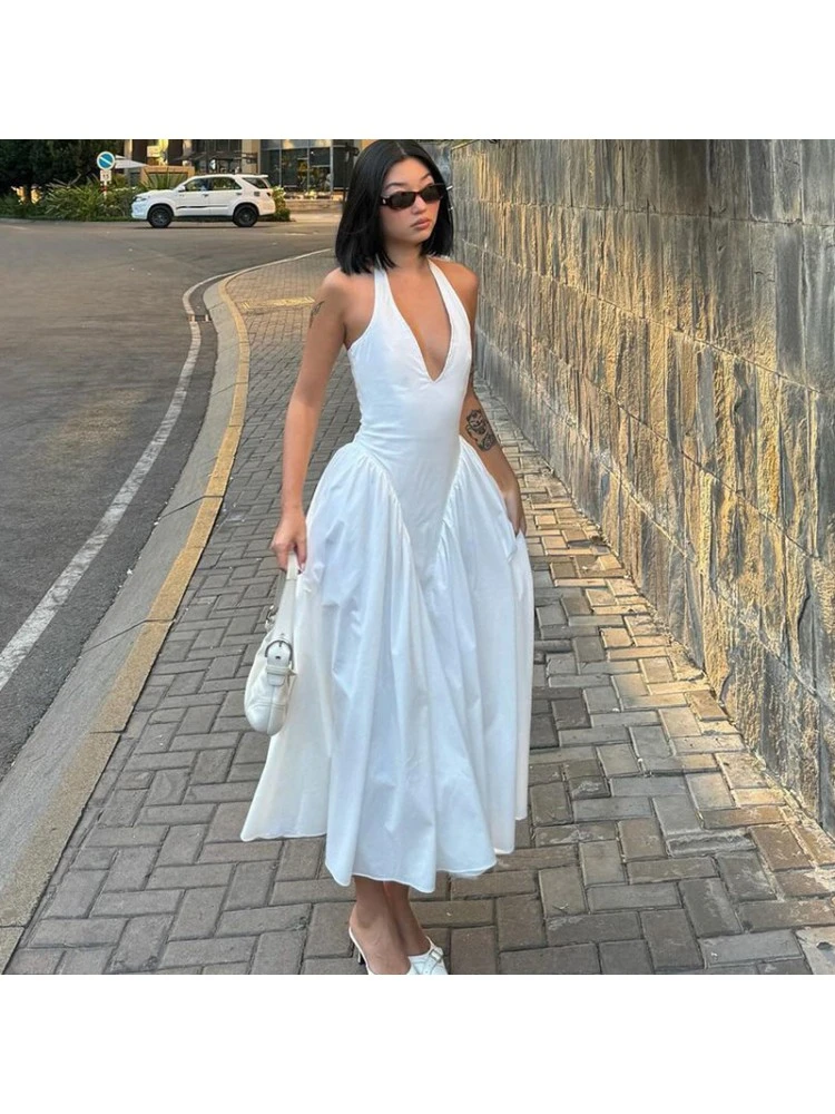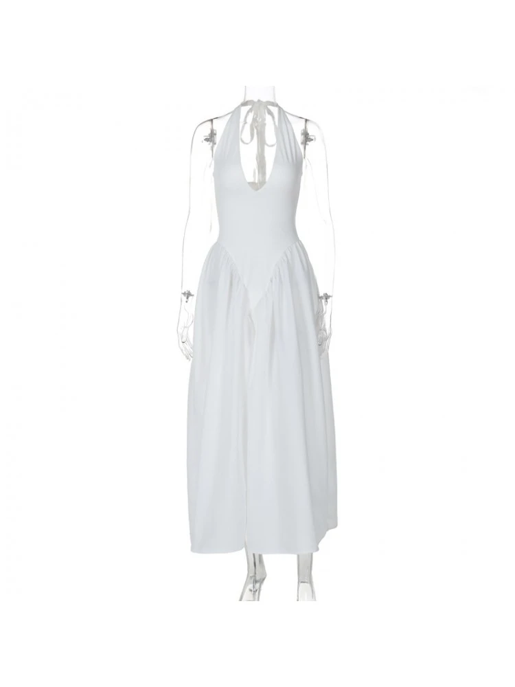 Halter,Hollow Out,Lace Up,Pure Color,Ruched,Solid Color,Plain Color,Pullover