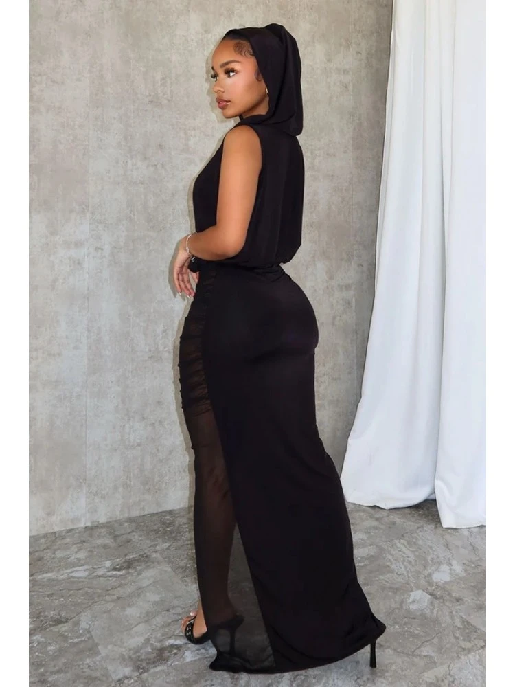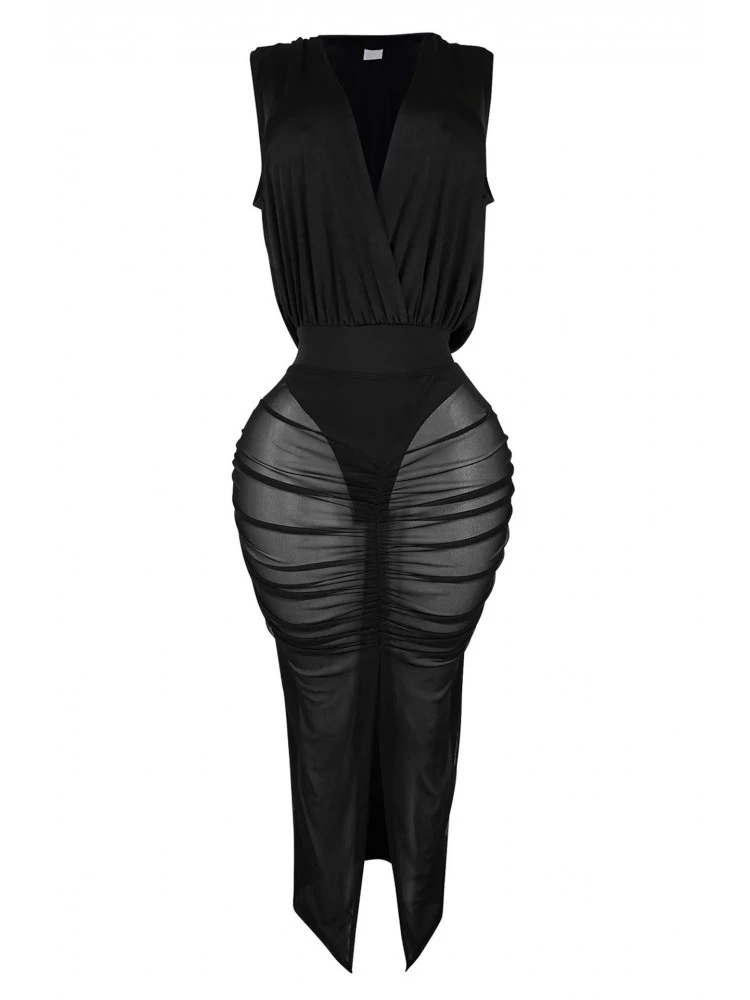 Patchwork,Pure Color,Ruched,Split Hem,Solid Color,Plain Color,Pullover,See Through