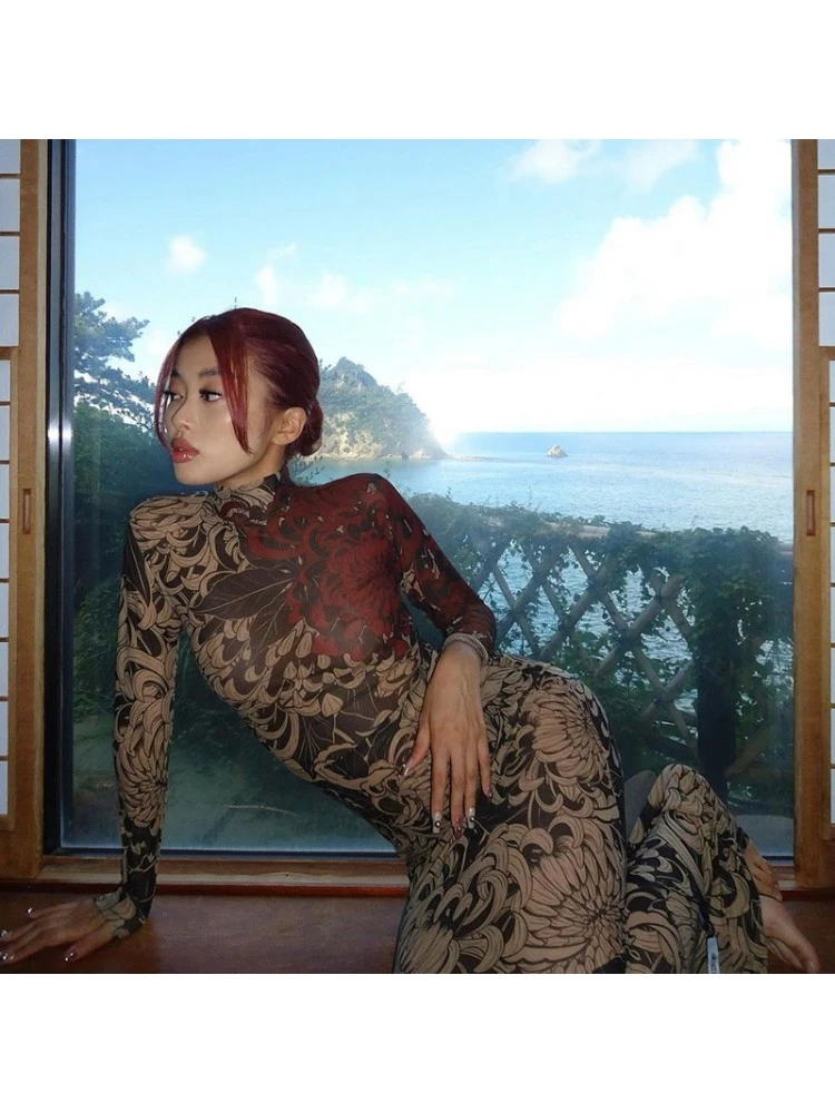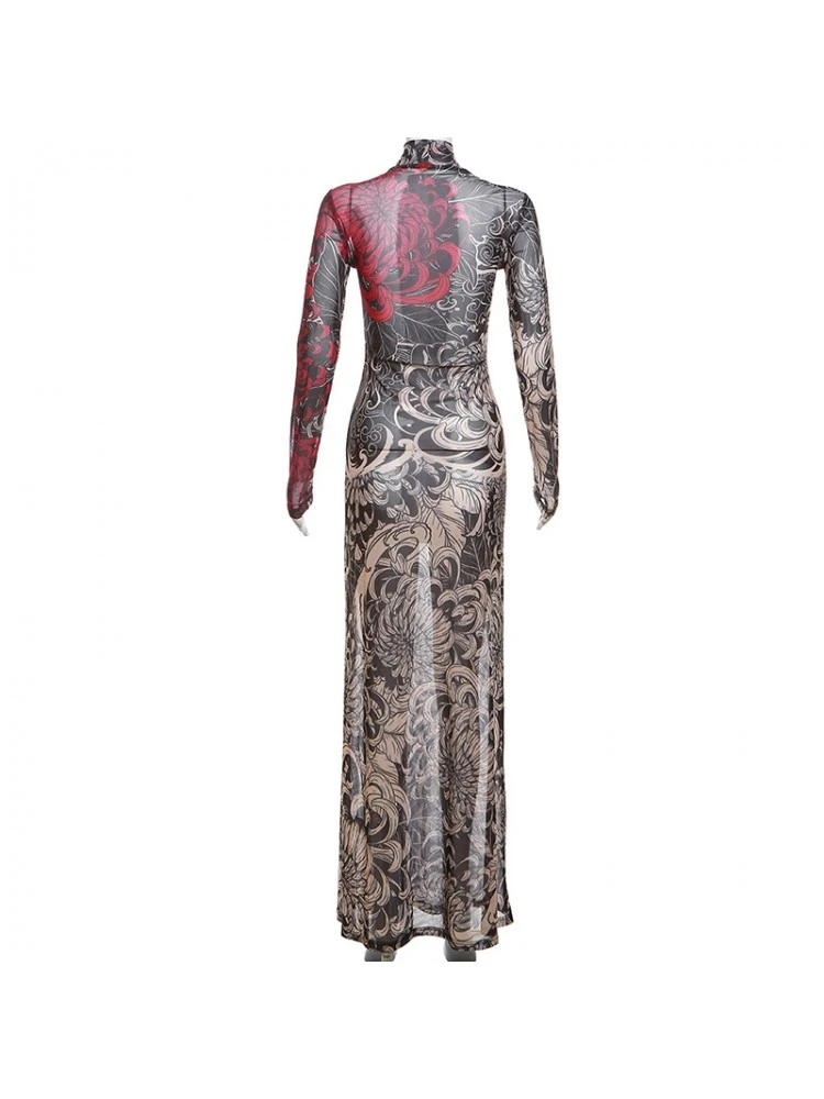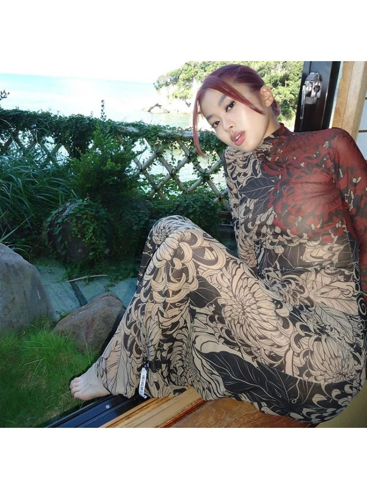 Floral,Flower,Pullover,See Through,Print