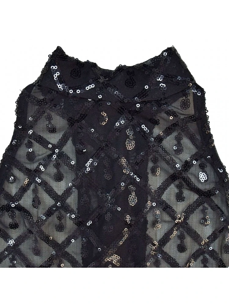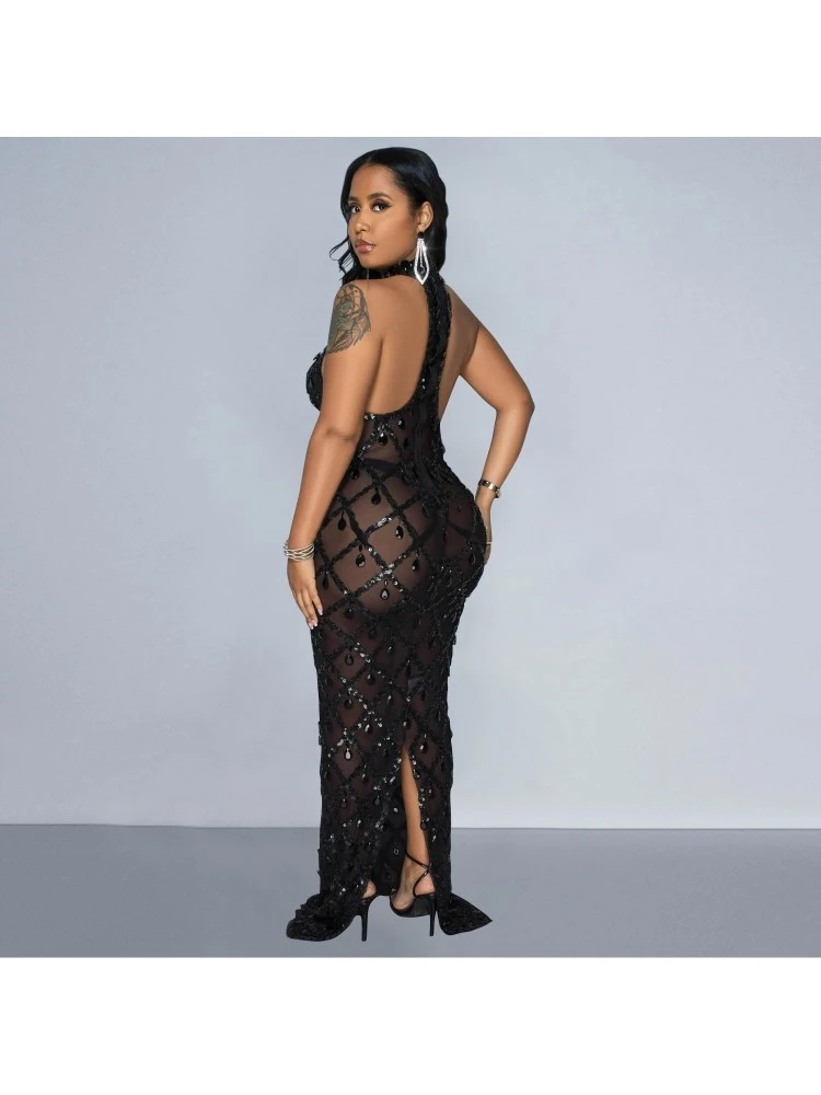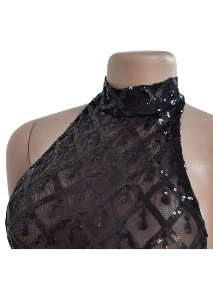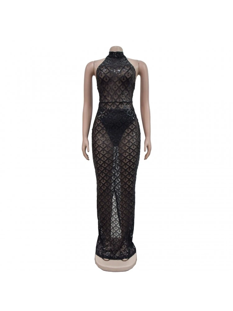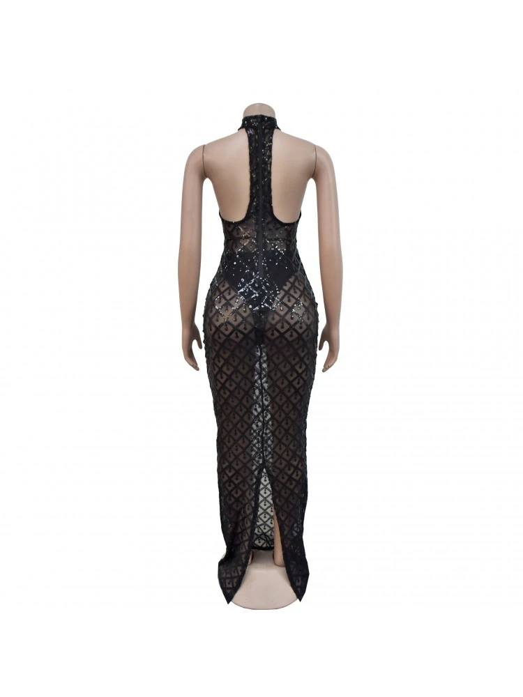 Halter,Patchwork,Pure Color,Sequin,Split Hem,Solid Color,Plain Color,Pullover,See Through