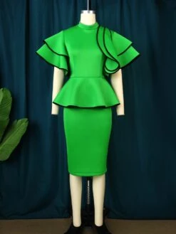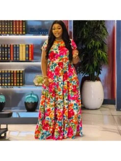 Chinese Style Calligraphy Plum Blossom Short Sleeve Midi Dress