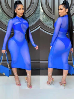 Hollow Out High Rise Bodycon Cover Ups Dress